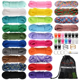 WEREWOLVES Paracord Craft Kit - 60 Colors, 10ft Ropes, Complete Accessories for Making Paracord Bracelets, Lanyards, Dog Collar