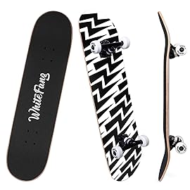 WhiteFang Skateboards for Beginners, Complete Skateboard 31 x 7.88, 7 Layer Canadian Maple Double Kick Concave Standard and Tricks Skateboards for Kids and Beginners (Fun Passion)