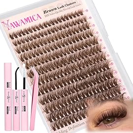 Yawamica Brown Lash Clusters Kit DIY Lash Extension By Self ---Love, life with Yawamica lashes Easily Try Do Cluster Eyelash Extensions at home for Self Application Why Yawamica DIY Lash Extensions Kit? *Include: 240pcs Brown lashes clusters, 10ml lash bond and seal, lash tweezers *Lash Specification: 10-16mm 50D volume brown eyelash clusters * Ma..