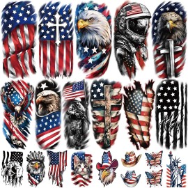 Independence Day Theme Temporary Tattoo: Looking for a unique way to show your patriotism on the 4th of July? Try our American-themed temporary tattoo! Yazhiji Fourth of July temporary tattoos are included different Patriotic elements designs: fireworks, American flag, eagle, love America, different shapes of flags, stars, hats, balloons, Medal of ..