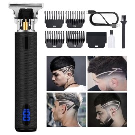 Professional Hair Trimmer for Men, Beard Trimmer Hair Clippers for Men, Cordless Rechargeable Hair Trimmer Metal Body Cutting Grooming Kit,Beard Shaver Barbershop (Black with LCD)