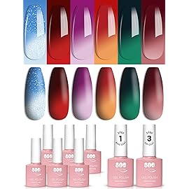 YTD Likomey Color Changing Gel Nail Polish 6 Colors with Base and Top Coat Kit,Fall Winter Mood Temperature Change Colors Red Green Blue Ombre Thermal Manicure UV Color Gel Set,8 Pcs 7.5 ml