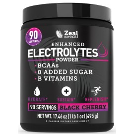 Zeal Electrolyte Powder - 90 Servings | Keto Electrolytes Powder | Zero Sugar, BCAAs, B-Vitamins | Potassium, Zinc, Magnesium | Hydration Powder Recovery Drink | Cherry Limeade