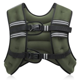ZELUS Weighted Vest, 6lb/8lb/12lb/16lb/20lb/25lb/30lb Weight Vest with Reflective Stripe for Workout, Strength Training, Running, Fitness, Muscle Building, Weight Loss, Weightlifting, Green(16 lb)