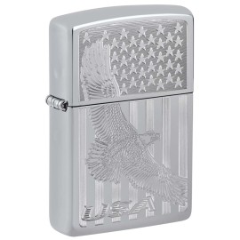 Zippo Lighter: USA Flying Eagle and Flag, Engraved - High Polish Chrome 81395